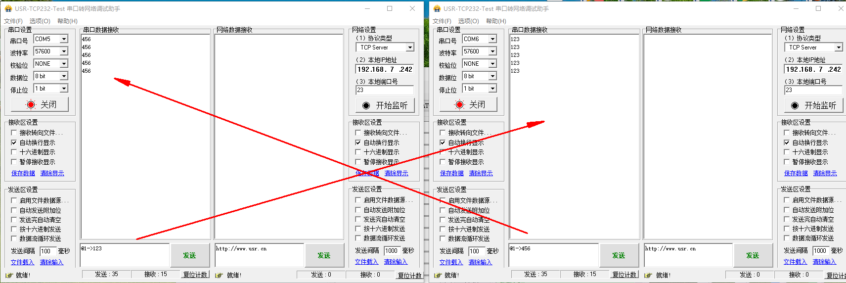 WMODE=2 時,數據發送前需增加@n->協議頭,但接收時無協議頭指示,具體可參考示例截圖。
