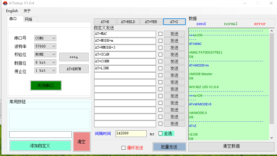 (2)發送AT+MAC查詢主機MAC:F4 70 0C 67 FB 21