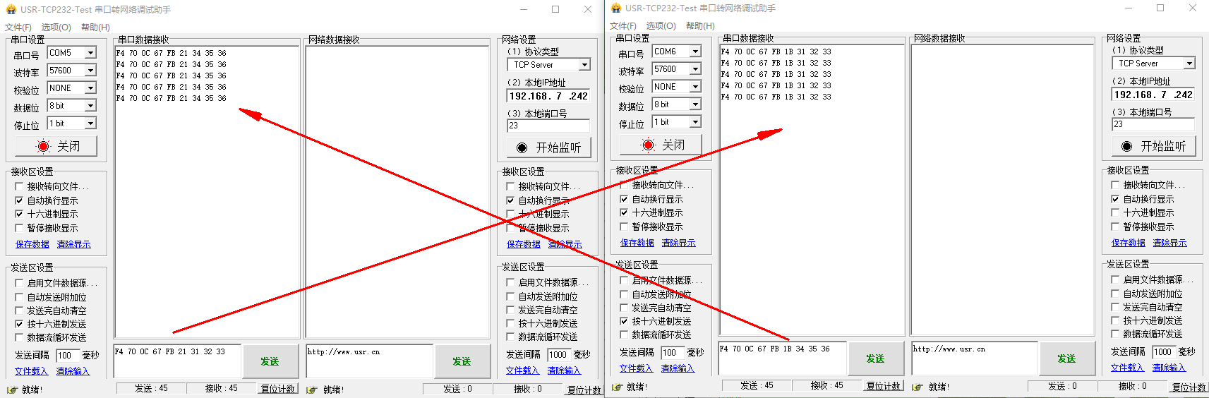 (5)查詢連接成功后,發送指令退出 AT 模式即可進行數據傳輸: AT+ENTM