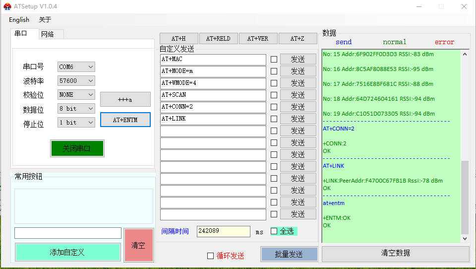 3、主機掃描并連接從機,確定連接狀態,退出配置