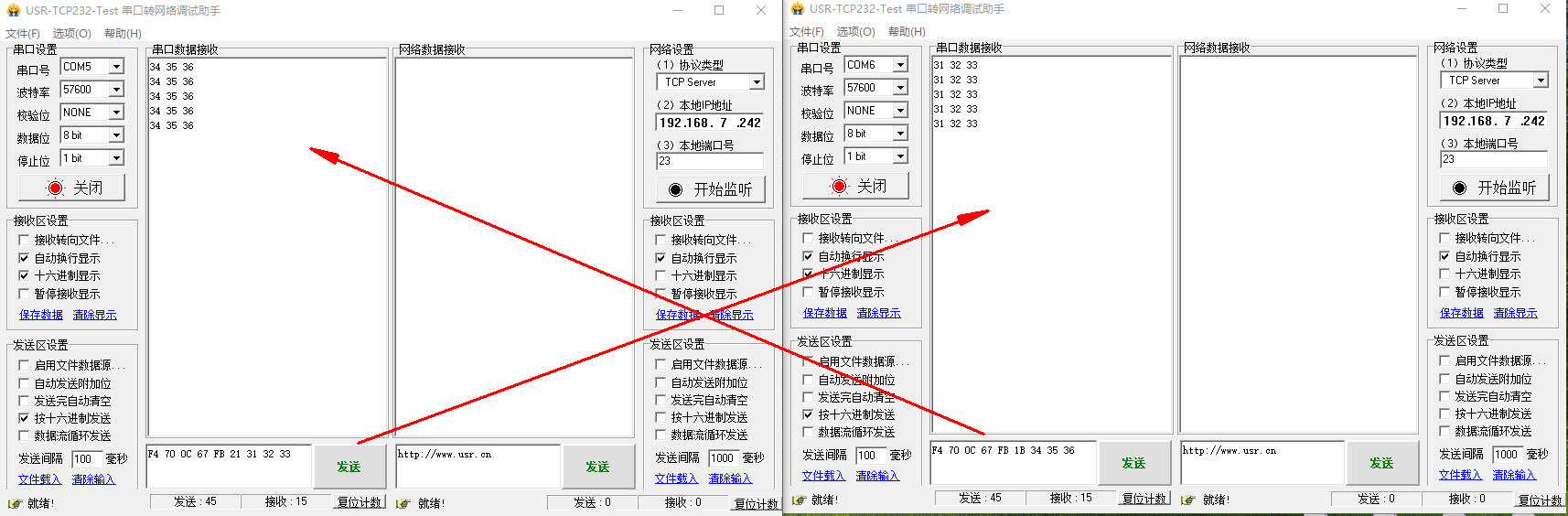 (5)查詢連接成功后,發送指令退出 AT 模式即可進行數據傳輸: AT+ENTM