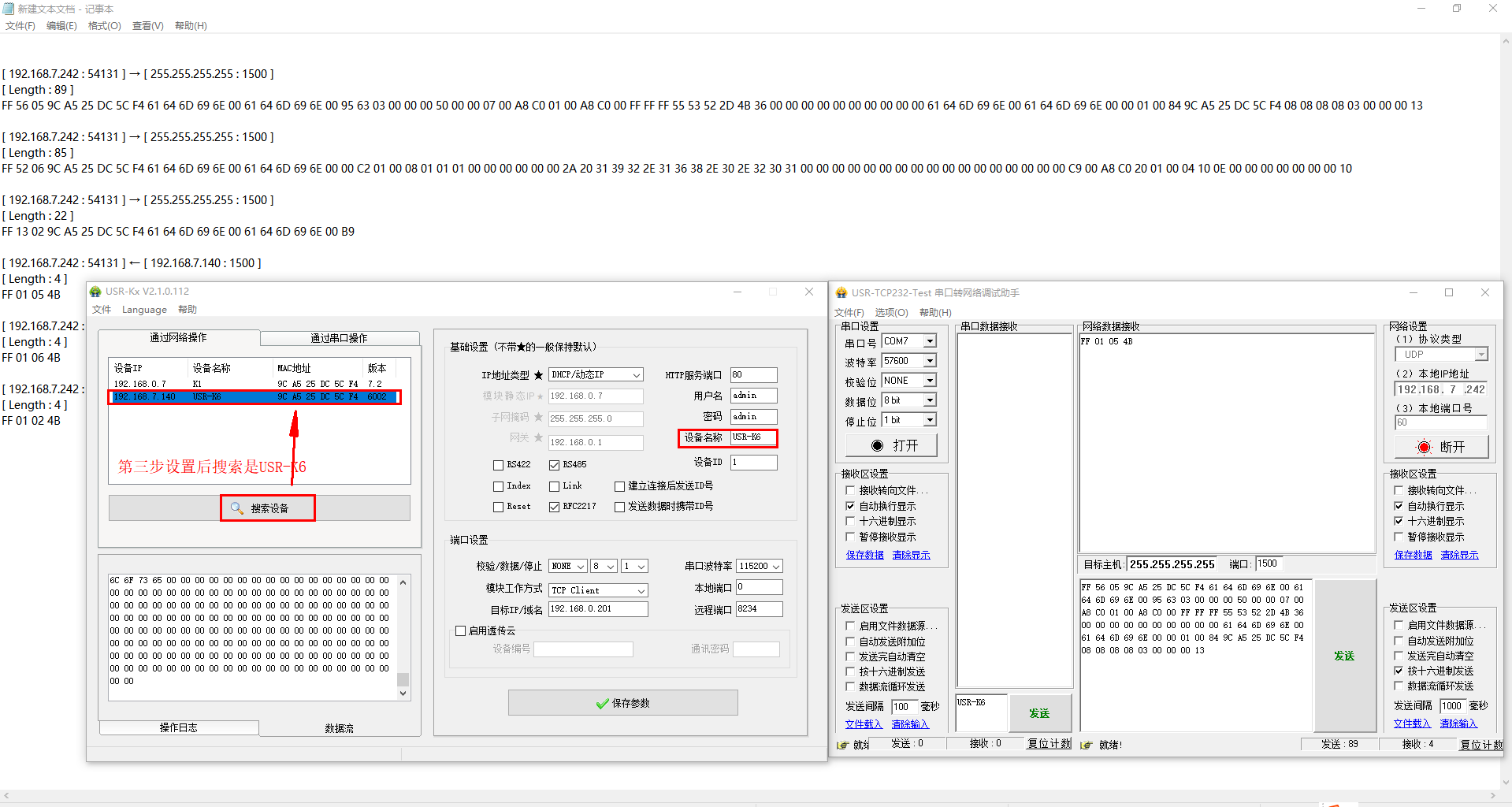 四、確認名稱USR-K6對應的網絡協議十六進制