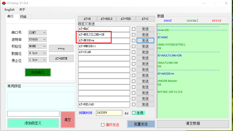 (2)發(fā)送AT+MAC查詢從機MAC:F4 70 0C 68 01 B7