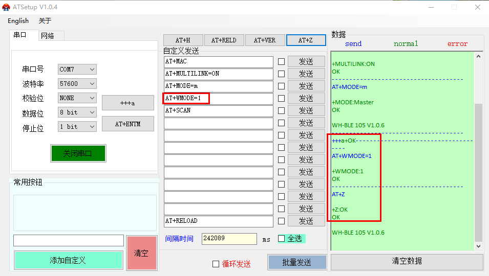 (2)發(fā)送AT+WMODE=1 設置定點模式方式一