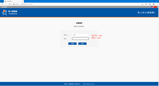 (2)在配置網頁界面,與直接進入設備內置網頁是一樣的,需要輸入內置網頁密碼:root