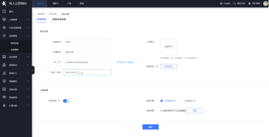 (1)點擊添加設備,之后將設備SN和IMEI添加。如果需要使用有人云監測功能,添加時需要設備的IMEI、SN這些參數,參數都設備便簽上可以查看,也可以在進入內置網頁總覽界面查看