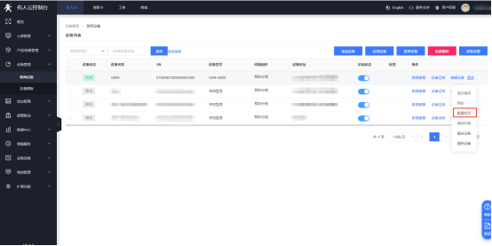(1)在有人云的“設備列表”--“聯網設備”界面,找到想要進行參數配置的設備,點擊“更多”,選擇“配置網頁”
