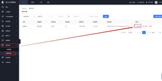 (3)在有人云的“設備運維”--“固件升級”界面可以看到所有進行升級的任務,升級詳情中查看當前固件升級進度