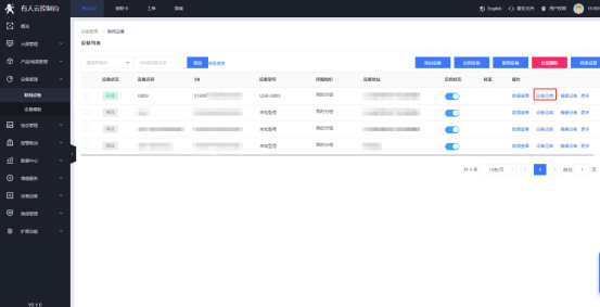 (1)在有人云的“設備管理”--“聯網設備”界面下,找到相應設備,點擊“設備運維”,設備運維主要包括設備流量監控以及信號質量監測。