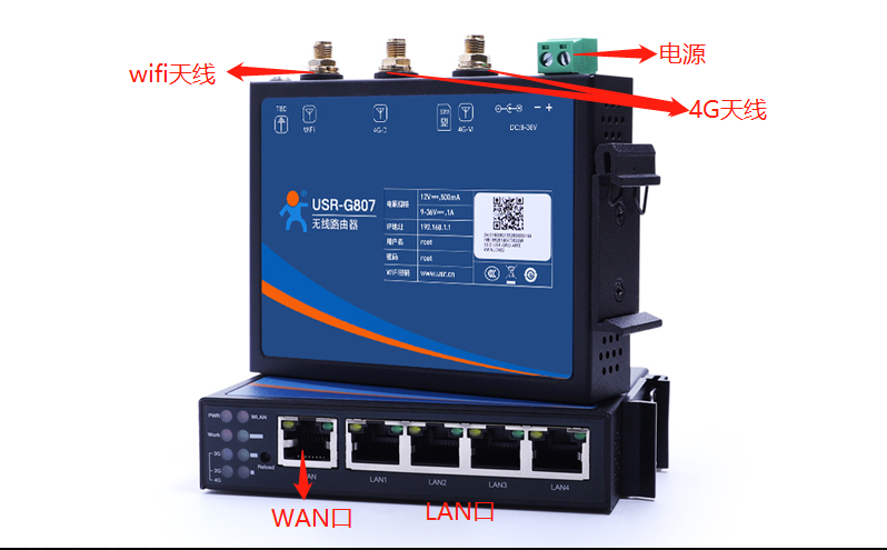 USR-G807 取出卡槽,放入 4G SIM 卡,正確安裝 4G 天線和 WiFi 天線,將 USR-G807 的 LAN 口通過網(wǎng)線和電腦網(wǎng)口連接。 聯(lián)網(wǎng):在斷電狀態(tài)下插入 SIM 卡(卡槽正面對(duì)應(yīng)“sim”絲印正方向)