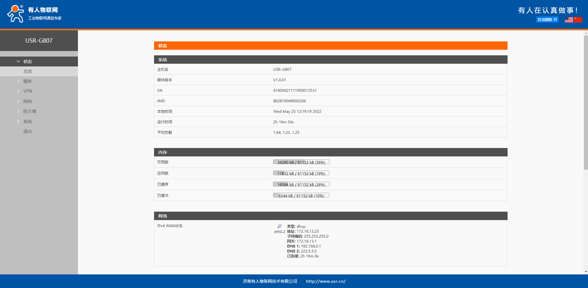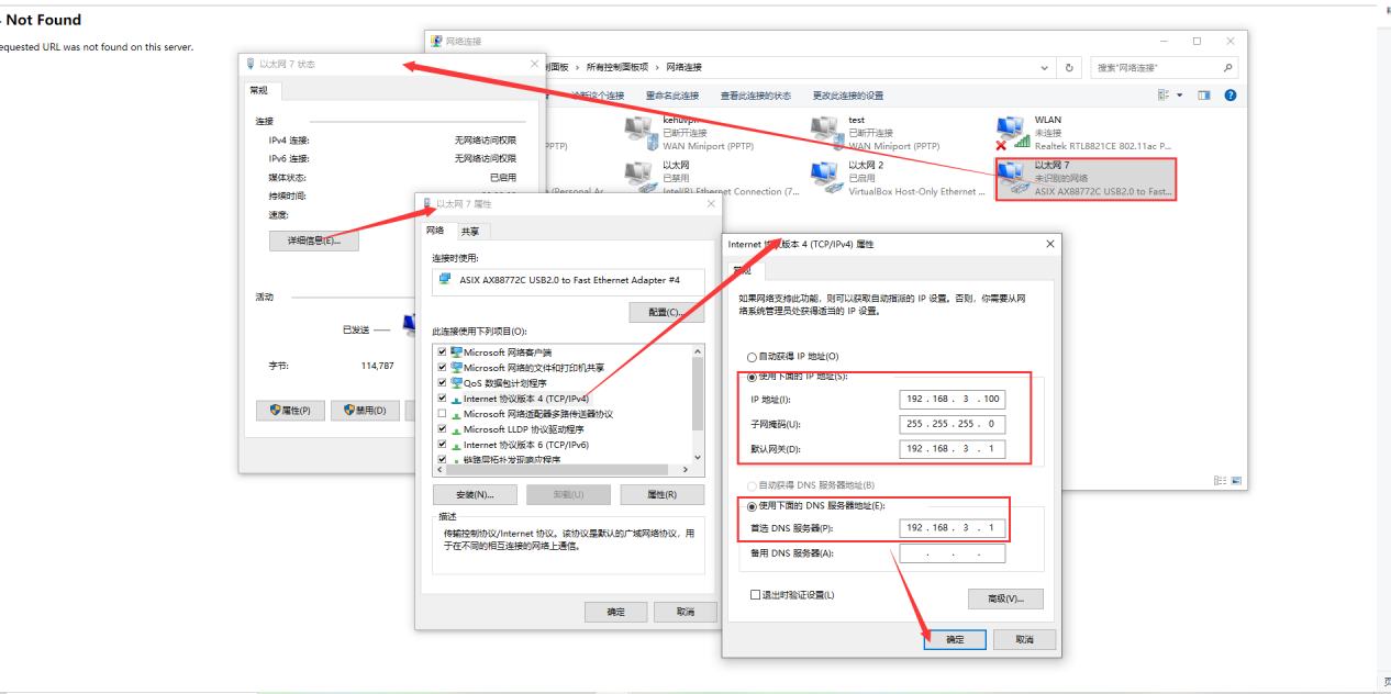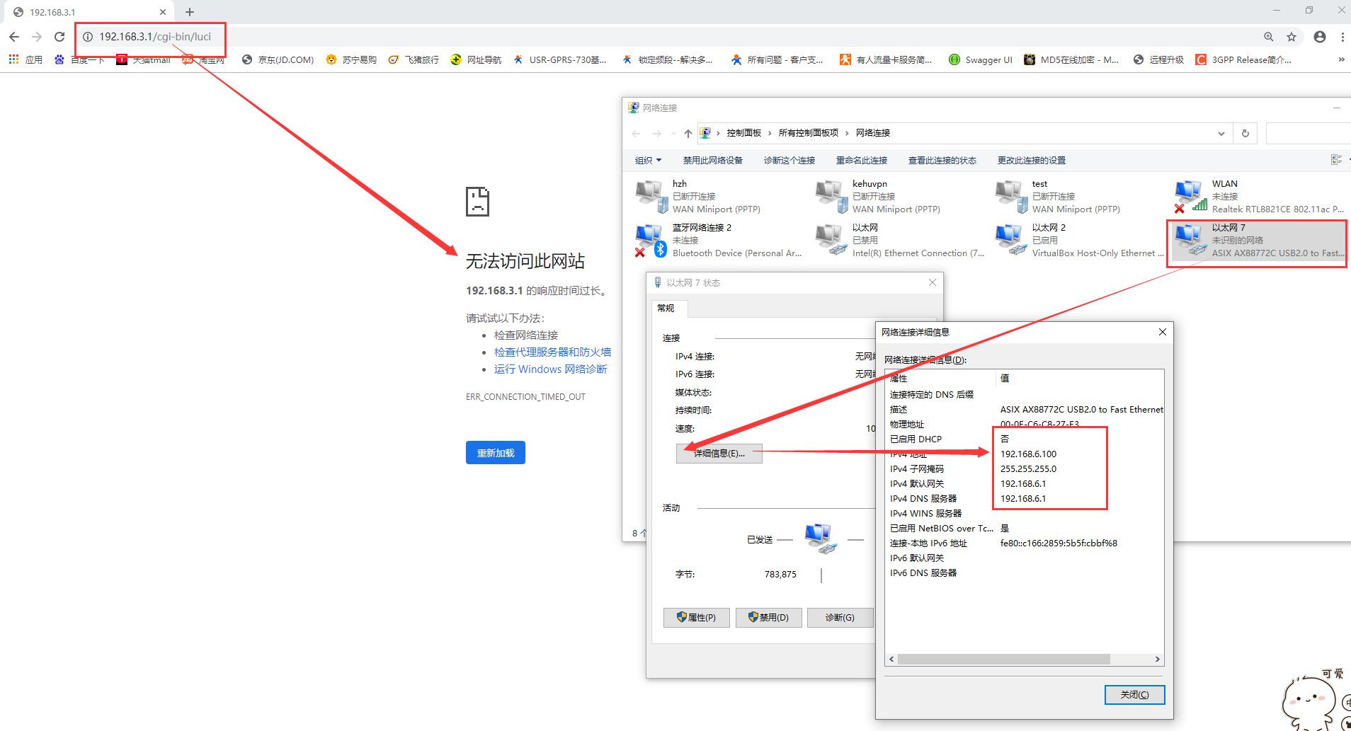 7、可以看到此刻電腦可以通過該網(wǎng)卡上網(wǎng),也就說明網(wǎng)絡(luò)通了。再次進(jìn)入設(shè)備的內(nèi)置網(wǎng)頁,因?yàn)樵O(shè)備LAN IP此時(shí)為192.168.3.1,需要用修改后的IP進(jìn)入