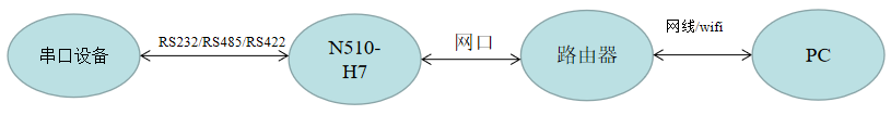 1>硬件連接:N510-H7的串口通過USB轉232/485/422連接到電腦上,電腦和N510-H7接在同一個路由器上