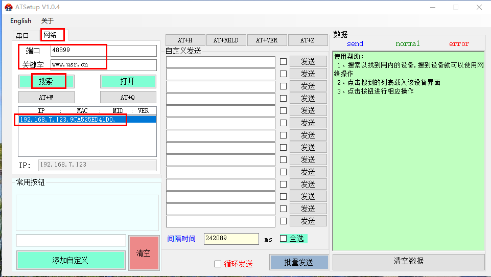 五、網(wǎng)絡(luò)搜索USR-W610的IP