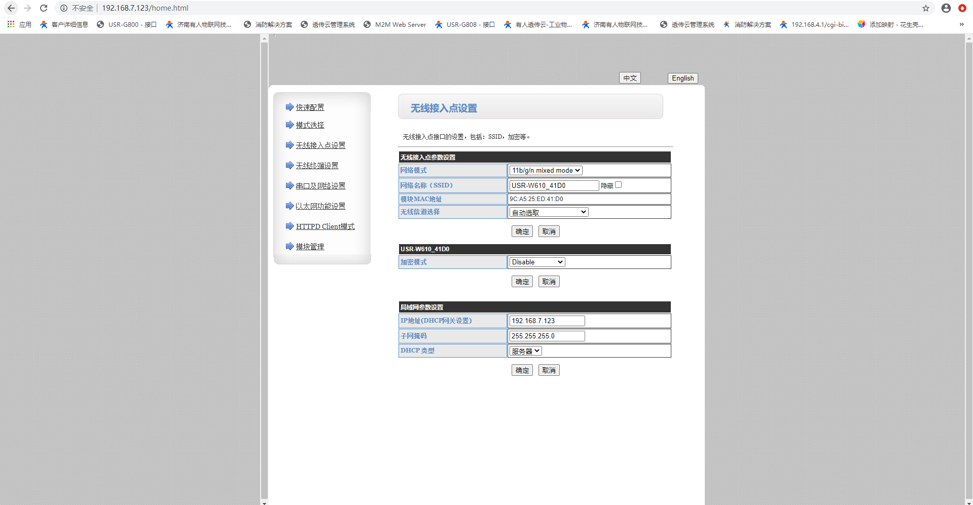3、瀏覽器輸入這個(gè)IP,重新登錄USR-W610網(wǎng)頁(yè),去配置橋接模式。