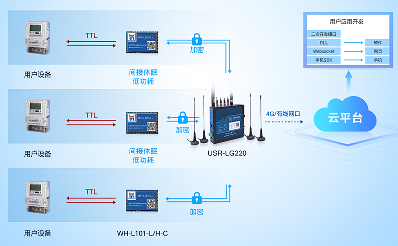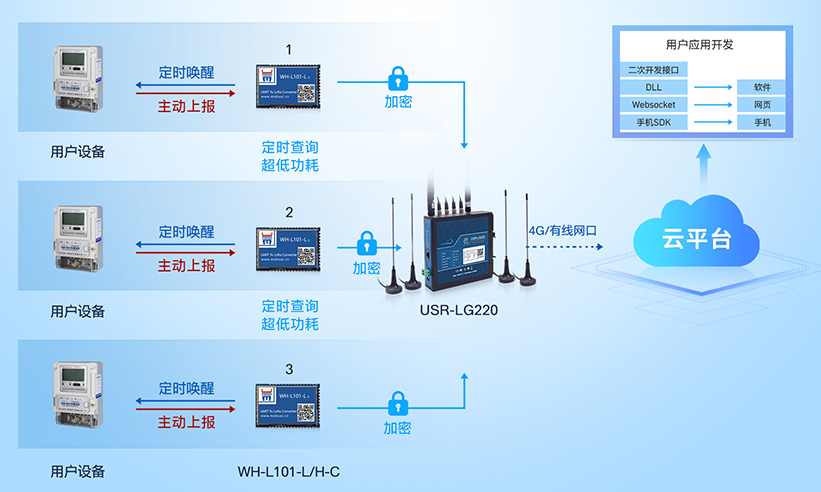 特點(diǎn):只需搭配LoRa集中器,模塊即可直接與服務(wù)器進(jìn)行數(shù)據(jù)傳輸,減少使用有線(xiàn)連接的繁瑣過(guò)程,適合無(wú)需考慮功耗控制的應(yīng)用領(lǐng)域。