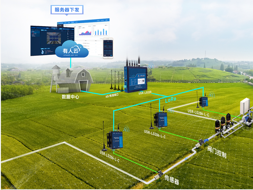 LG220選擇服務(wù)器下發(fā)功能,可快速實(shí)現(xiàn)遠(yuǎn)距離數(shù)據(jù)收發(fā),對(duì)灌溉、病蟲(chóng)害、施肥情況在線(xiàn)監(jiān)測(cè),從而減少值守人員數(shù)量,全面提升農(nóng)場(chǎng)生產(chǎn)管理水平,提高經(jīng)濟(jì)效益,降低運(yùn)營(yíng)成本