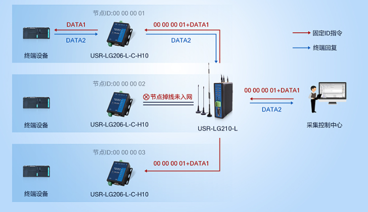 特點(diǎn):通過(guò)簡(jiǎn)單設(shè)置,LoRa集中器可自動(dòng)下發(fā)數(shù)據(jù),大幅減少服務(wù)器負(fù)載量。例如,通過(guò)Modbus指令輪詢(xún)節(jié)點(diǎn),無(wú)需服務(wù)器下發(fā),節(jié)省網(wǎng)絡(luò)數(shù)據(jù)流量。