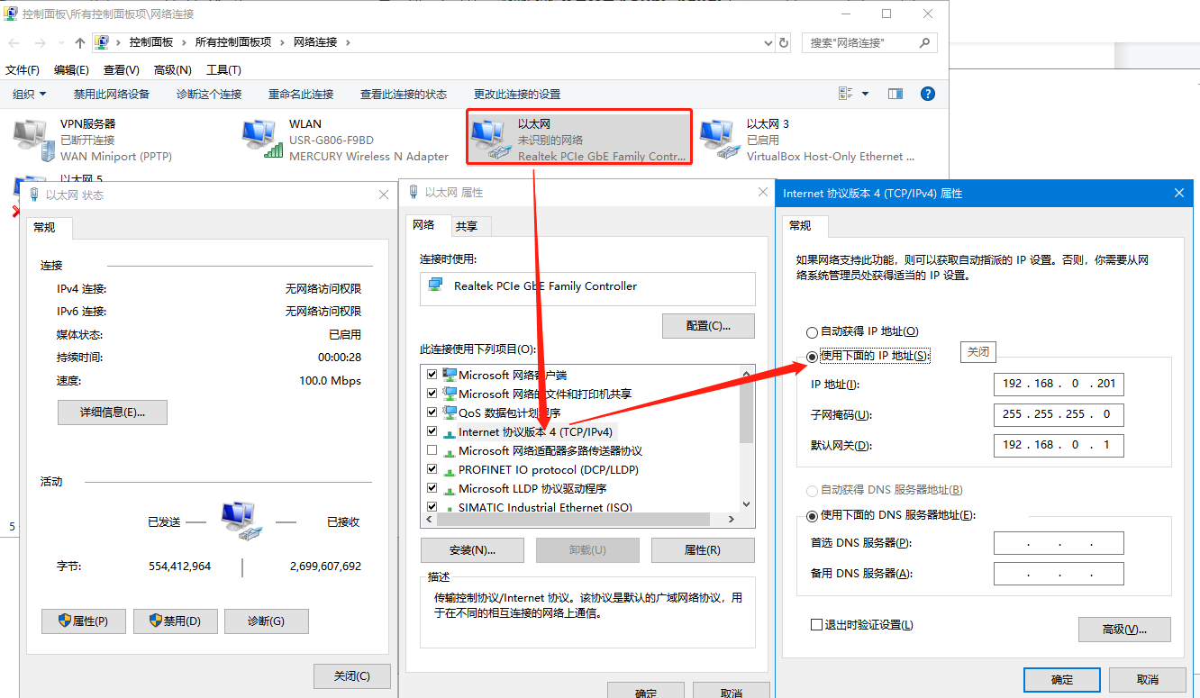 11)電腦本地連接,IP設置和N540 IP同網段,N540默認IP是192.168.0.7,網關192.168.0.1,電腦本地連接IPv4設置靜態IP,192.168.0.201,子網掩碼255.255.255.0,網關192.168.0.1。