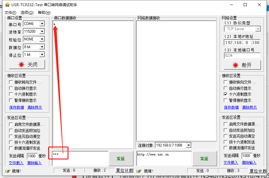 10)可以先判斷一下串口是否通了,可以在串口發送+++,如果設備收到+++后會自動返回a,所以如果收到a就說明串口已經通了