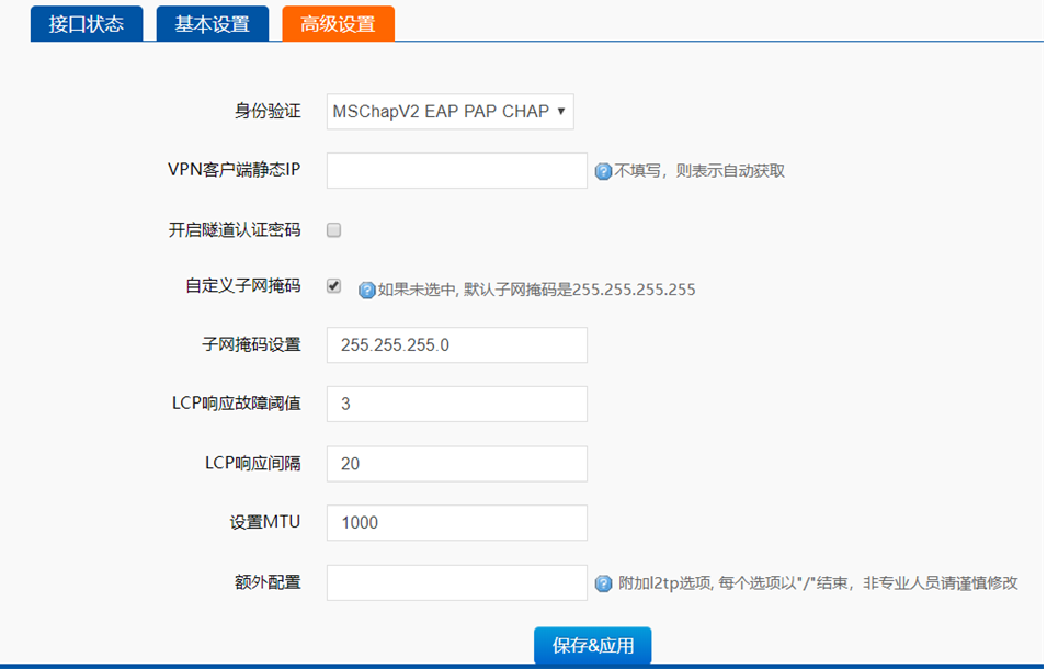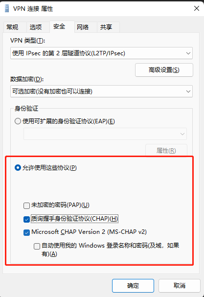 高級設置:身份驗證選擇MSCHAPV2 EAP PAPA CHAP。