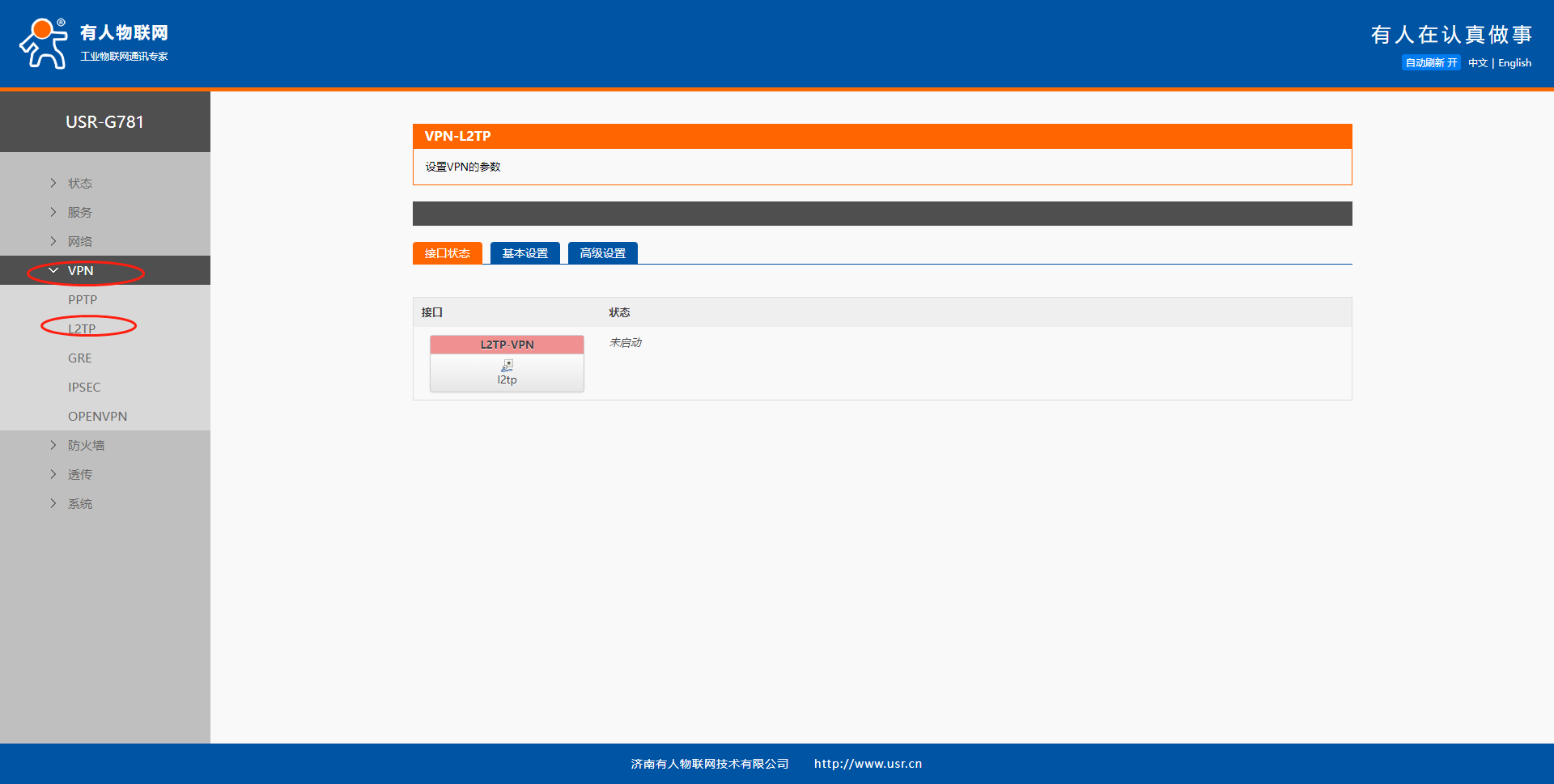USR-G781:采用WAN或4G接口連接外網,啟用L2TP連接 VPN。