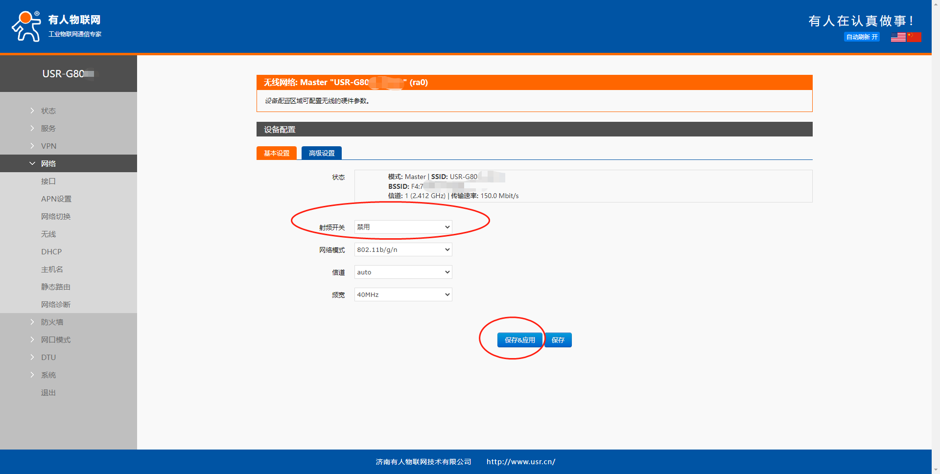 G80x(包括G806G806s等)系列:網絡--無線--高級設置--禁用射頻開關--保存&應用