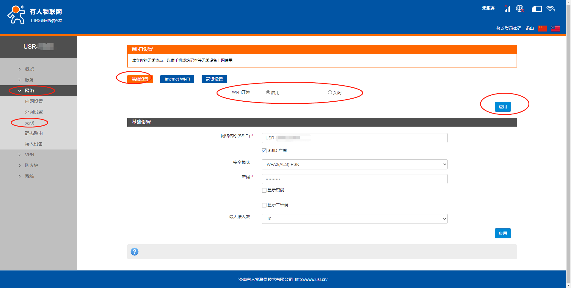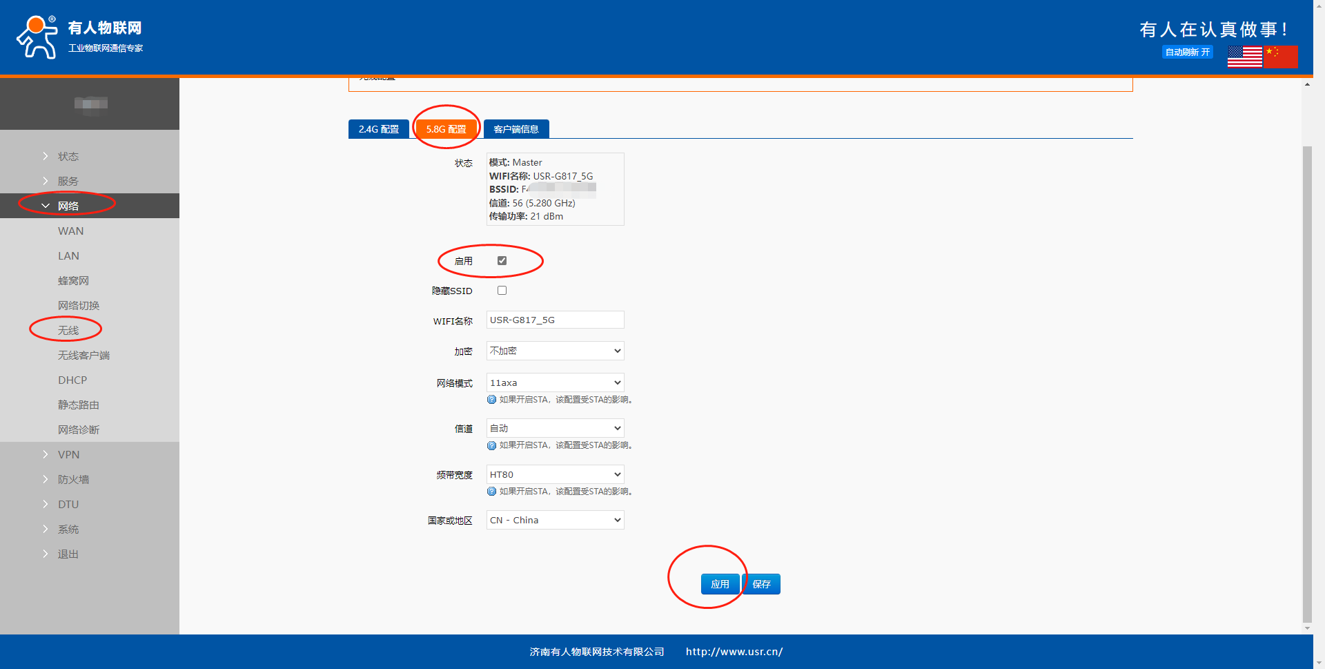 G805(包括RM02RM03)系列:網絡--無線--基礎設置--WIFI開關--應用