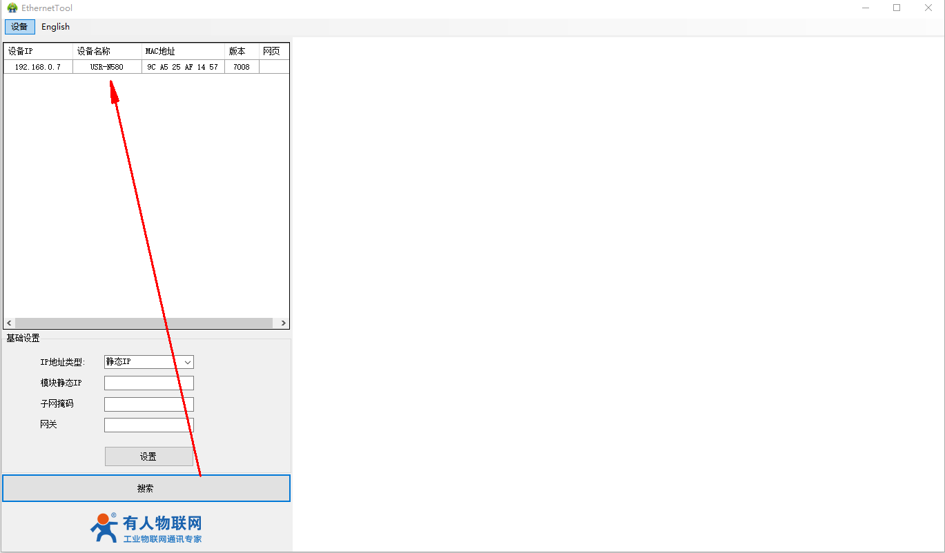 用H7系列配置軟件搜索N580設備,單擊搜索