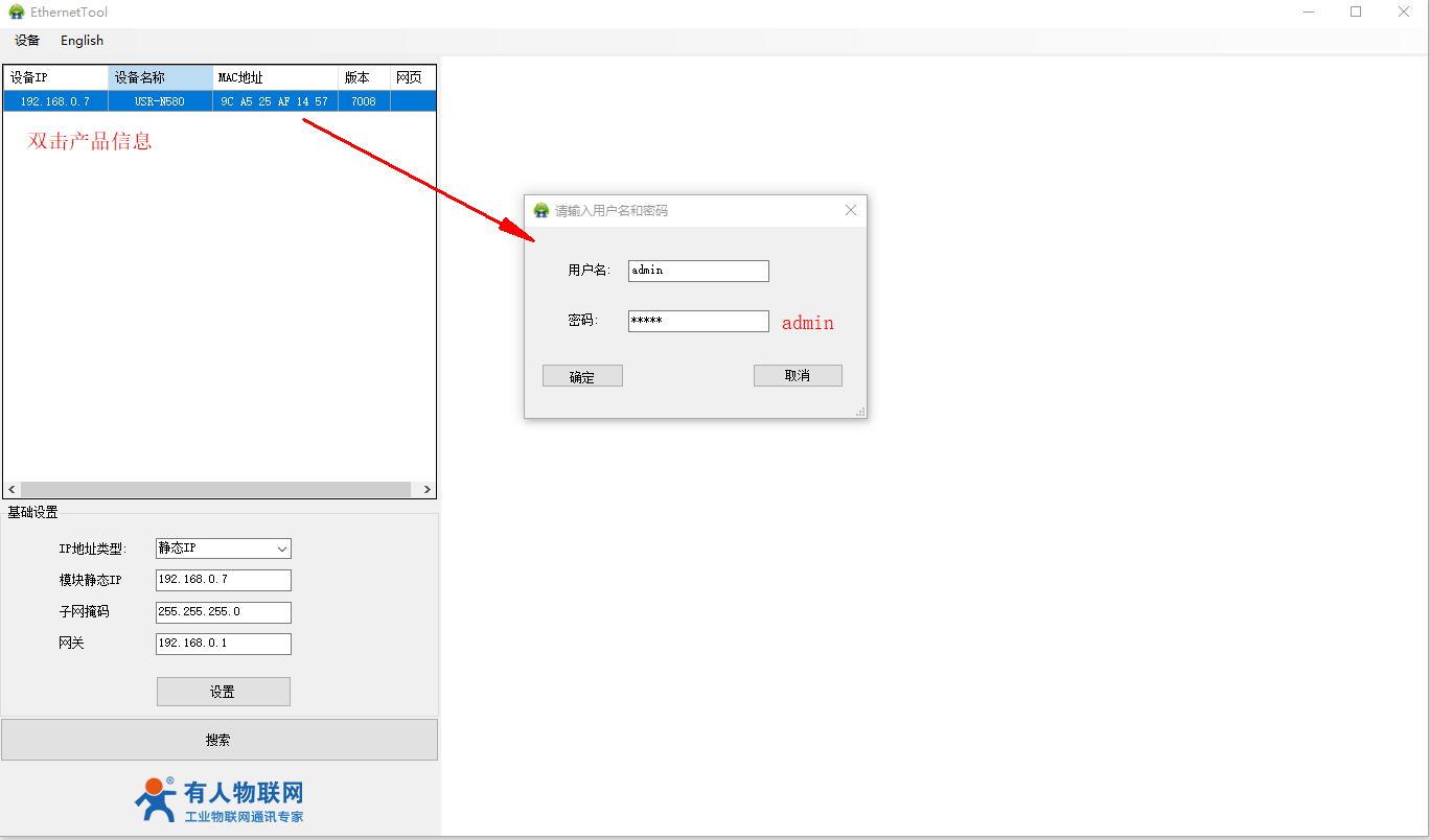 鼠標雙擊產品信息,會彈出登錄框。用戶名和密碼都是admin。登錄之后,查詢參數(shù)