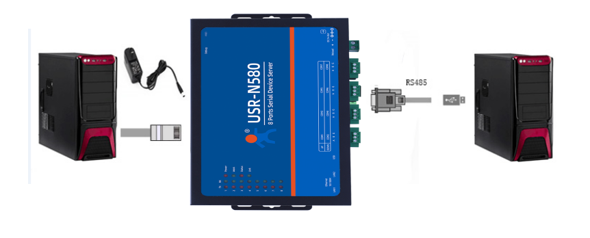 USR-N580-H7產(chǎn)品,USB-RS485串口線接N580串口一,注意485接線線序,USB-RS485 A線接N580 串口一的A端子,USB-RS485 B線接N580 串口一的B端子,USB頭插入電腦USB口。