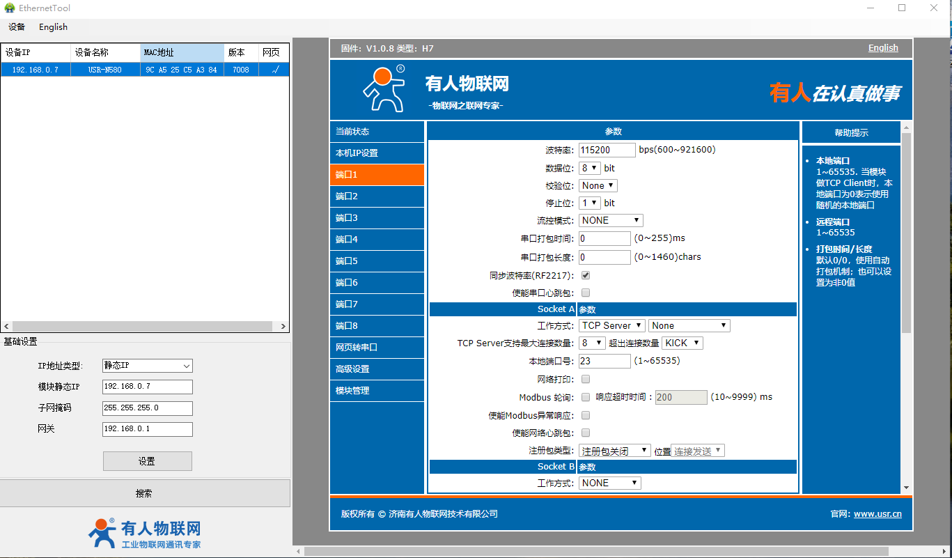 N580 RS485串口做TCP server,設置參數,保存重啟N580。