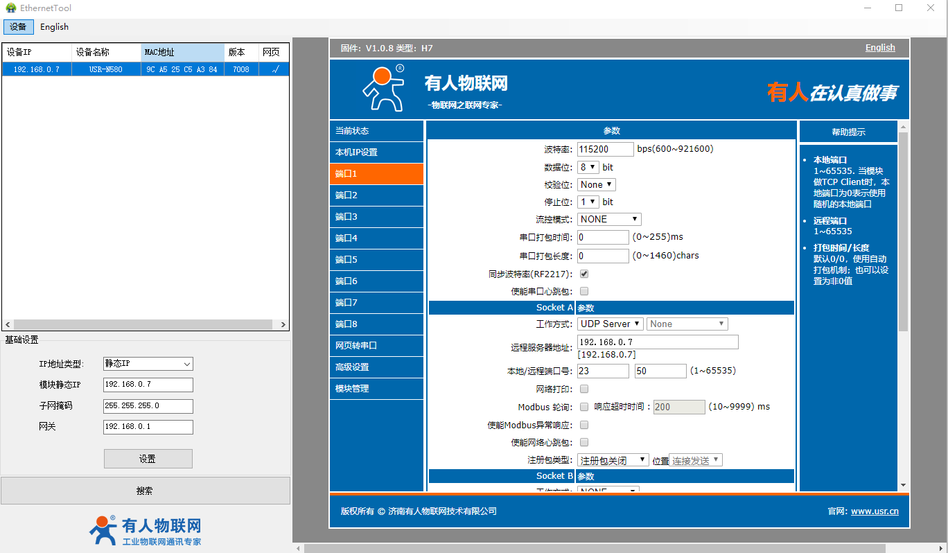 N580 RS485串口做UDP server,設置參數,保存重啟N580。