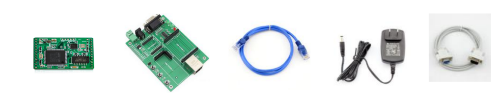 將 ED2(USR-TCP232-ED2,簡稱 ED2,下同)接到評估板上,將評估板的串口通過串口線(或USB 轉串口線)與計算機相連接,用網線將 ED2 的網口和 PC 的網口相連接,檢測硬件連接無錯誤后,接入我們配送的電源適配器,給ED2 評估板供電.