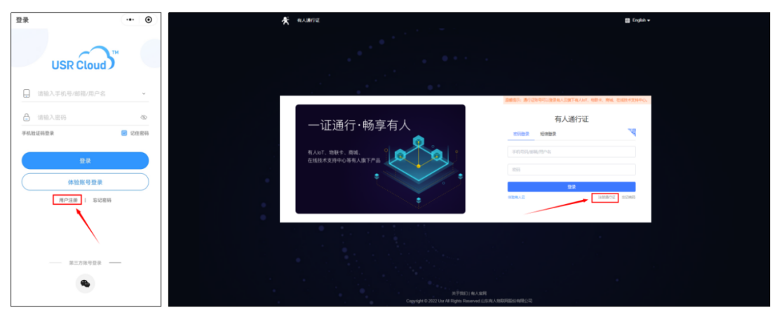 如果沒有賬號先在微信小程序“有人云”或電腦端:https://account.usr.cn/#/login_cps中申請有人云賬號