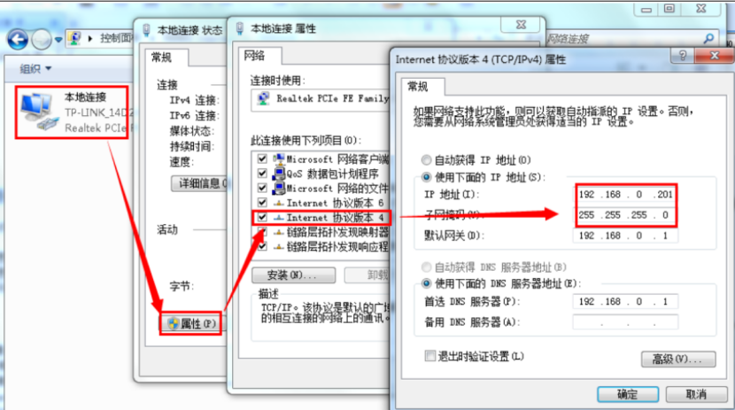 2.給電腦設置靜態IP,要與T0的IP在同一個網段(T0默認參數見表1)。