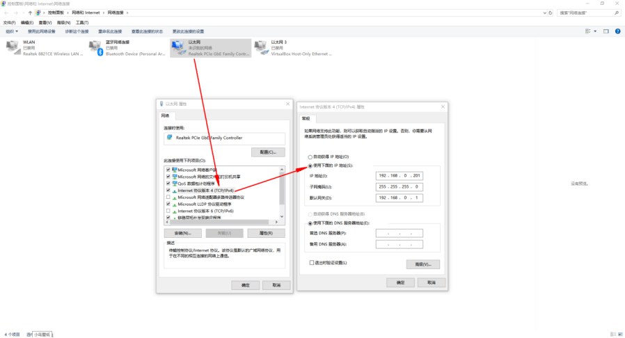 1)電腦本地連接,IP設置和N410s IP同網段,N410默認IP是192.168.0.7,網關192.168.0.1,電腦本地連接IPv4設置靜態IP,192.168.0.201,子網掩碼255.255.255.0,網關192.168.0.1。禁用其他網卡。