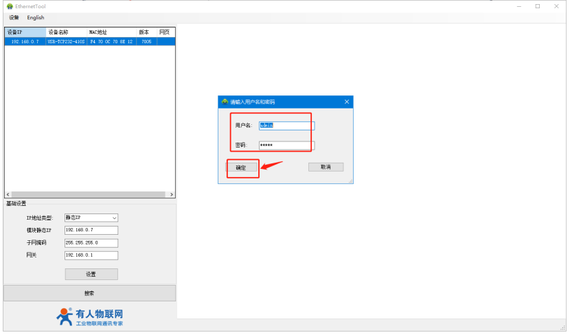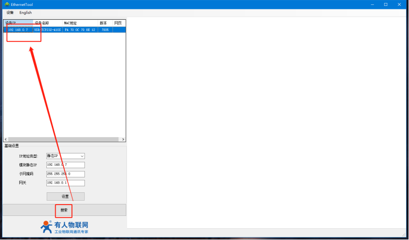 用H7系列配置軟件搜索410s設備,單擊搜索