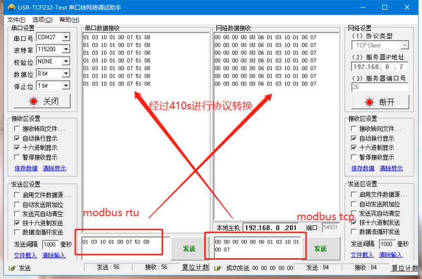 Modbus rtu和modbus tcp協議區別:Modbus TCP 協議則是在 Modbus RTU 協議上加一個 MBAP 報文頭,這個 MBAP 報文頭共七個字節長度,除了第五、六個字節外,其余的基本上都是不變(比如,modbus rtu數據是:01 03 10 01 00 07 51 08,modbus tcp數據就是:00 00 00 00 00 06 01 03 10 01 00 07,第五、六個字節為00 06,表示00 06 后面有6個字節)