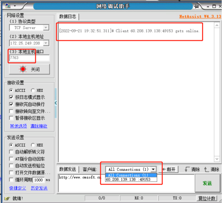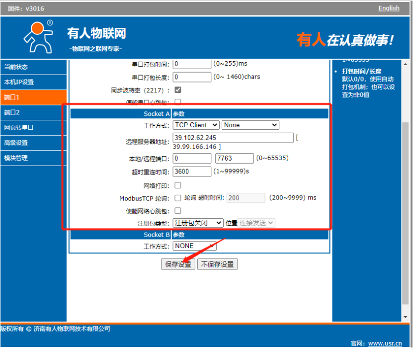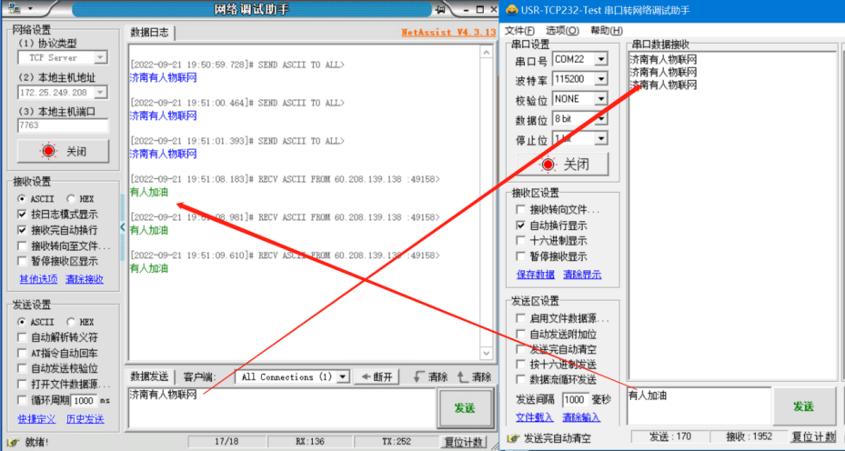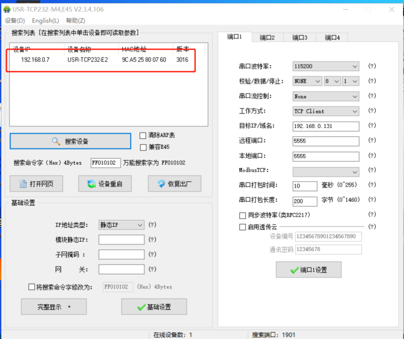 USR-TCP232-E2(M4) 連接遠程服務器測試案例