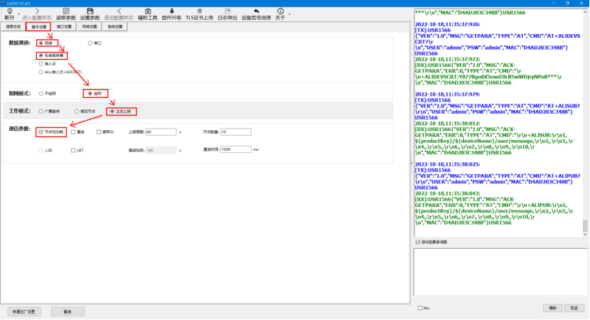 服務(wù)器IP/配置為服務(wù)器電腦的IP,服務(wù)器端口配置為服務(wù)器的端口號8899,點擊“設(shè)置參數(shù)”,點擊重啟設(shè)備,待設(shè)備重啟,服務(wù)器可以監(jiān)聽到該LG210連接。