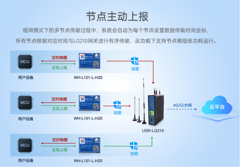 注意:網(wǎng)關(guān)處于主動上報模式下時,會根據(jù)用戶設(shè)置的參數(shù)(上報周期/節(jié)點總數(shù)=上報間隔)計算出每個節(jié)點需要進行上報的時間, 默認上報周期為60s,上報周期是單個節(jié)點上報數(shù)據(jù)的間隔, 也就是說低功耗下模塊會間隔60s喚醒一次。