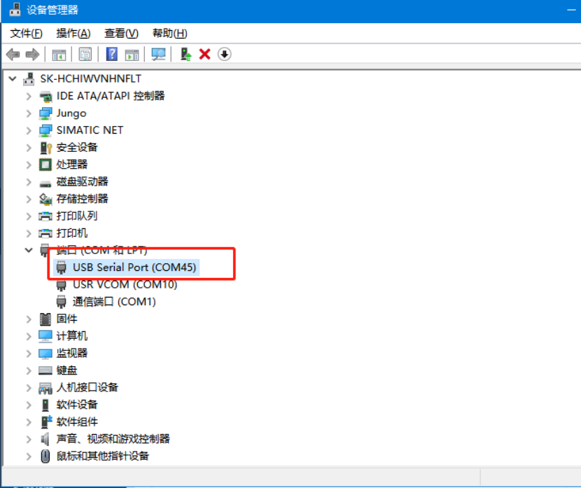 注意:以win10為例,查看串口號可在“我的電腦”->“管理”->“設備管理器”->“端口”中查詢。