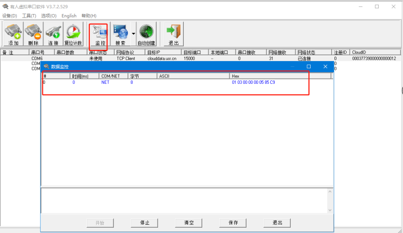 VCOM的【網(wǎng)絡(luò)狀態(tài)】顯示【監(jiān)聽(..)】,表示網(wǎng)絡(luò)已連接,否則查看上一步設(shè)置;