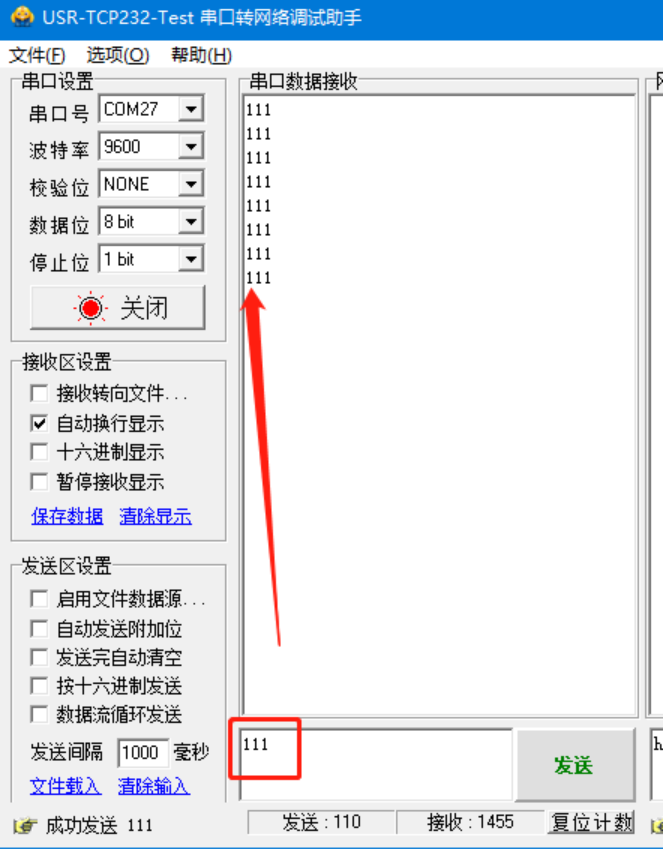 9.通過test軟件去打開電腦識別的M100的485口,去給http服務器發送數據。