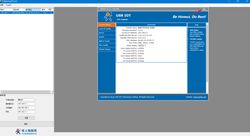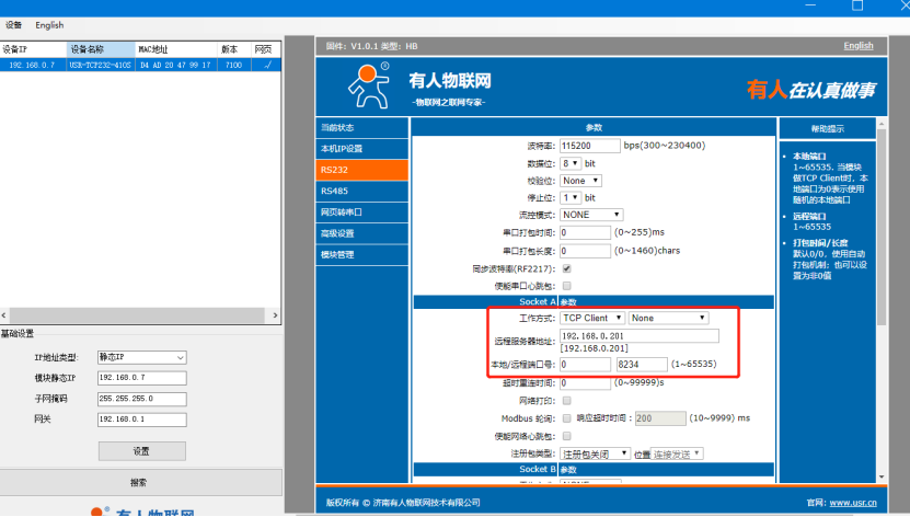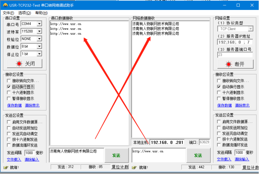 USR-TCP232-410S(HB)基本測(cè)試案例