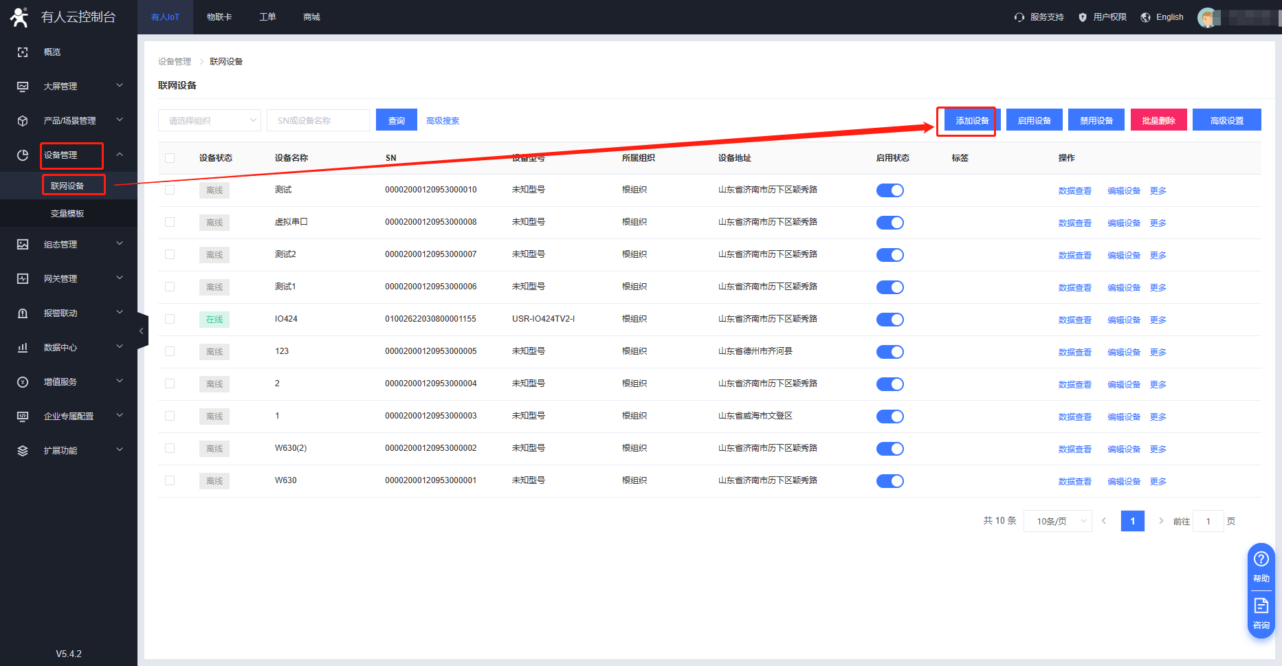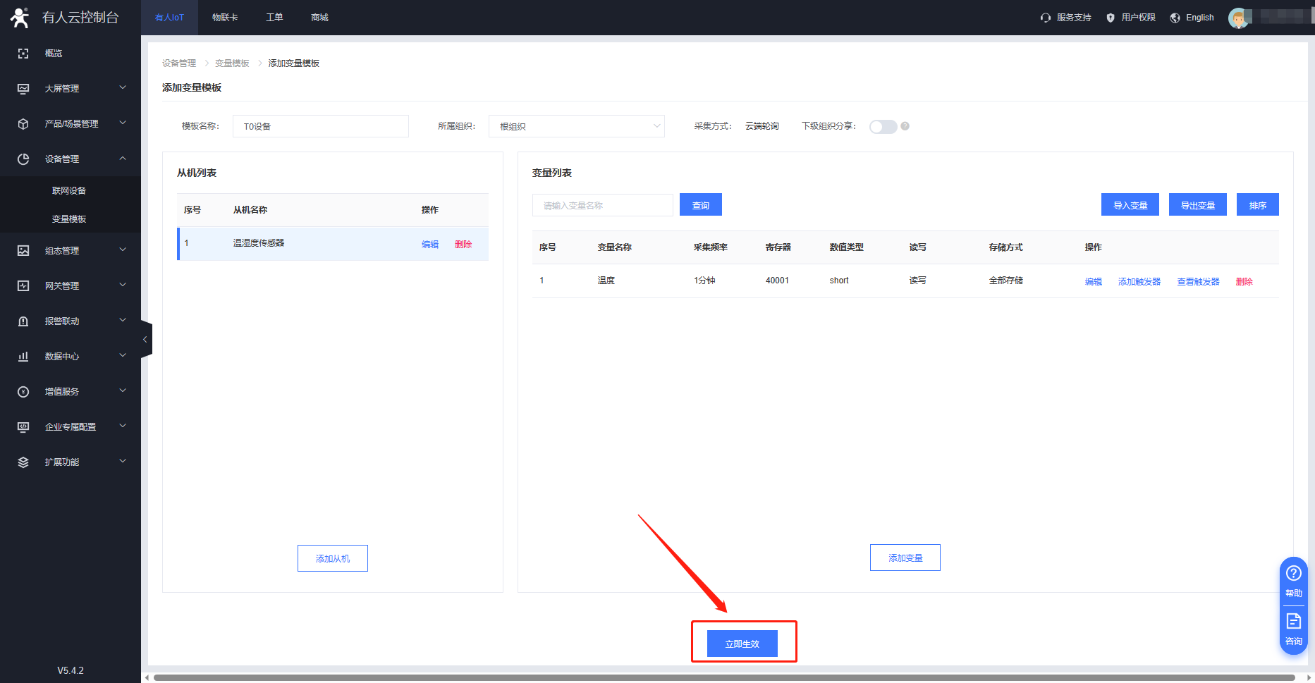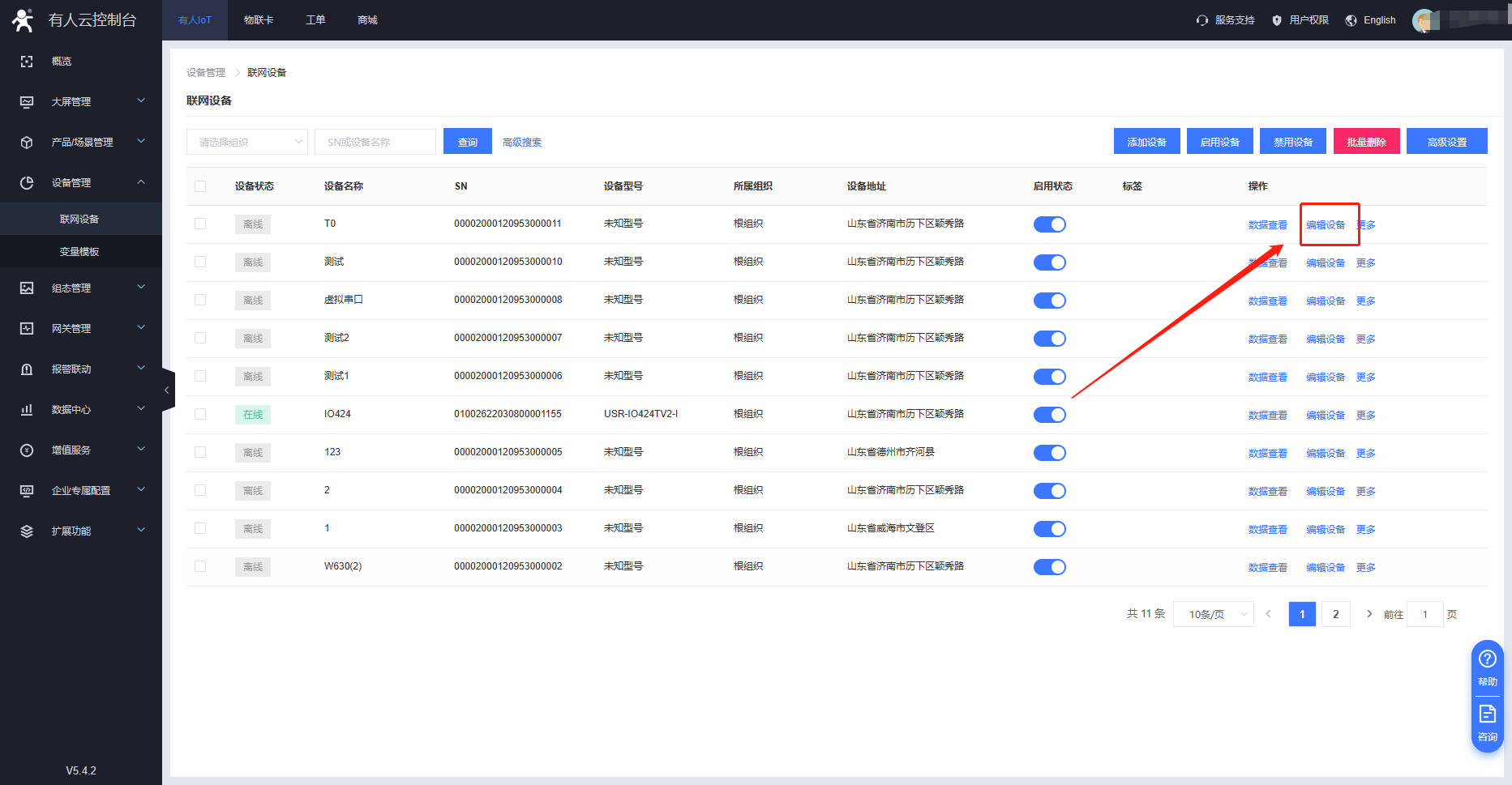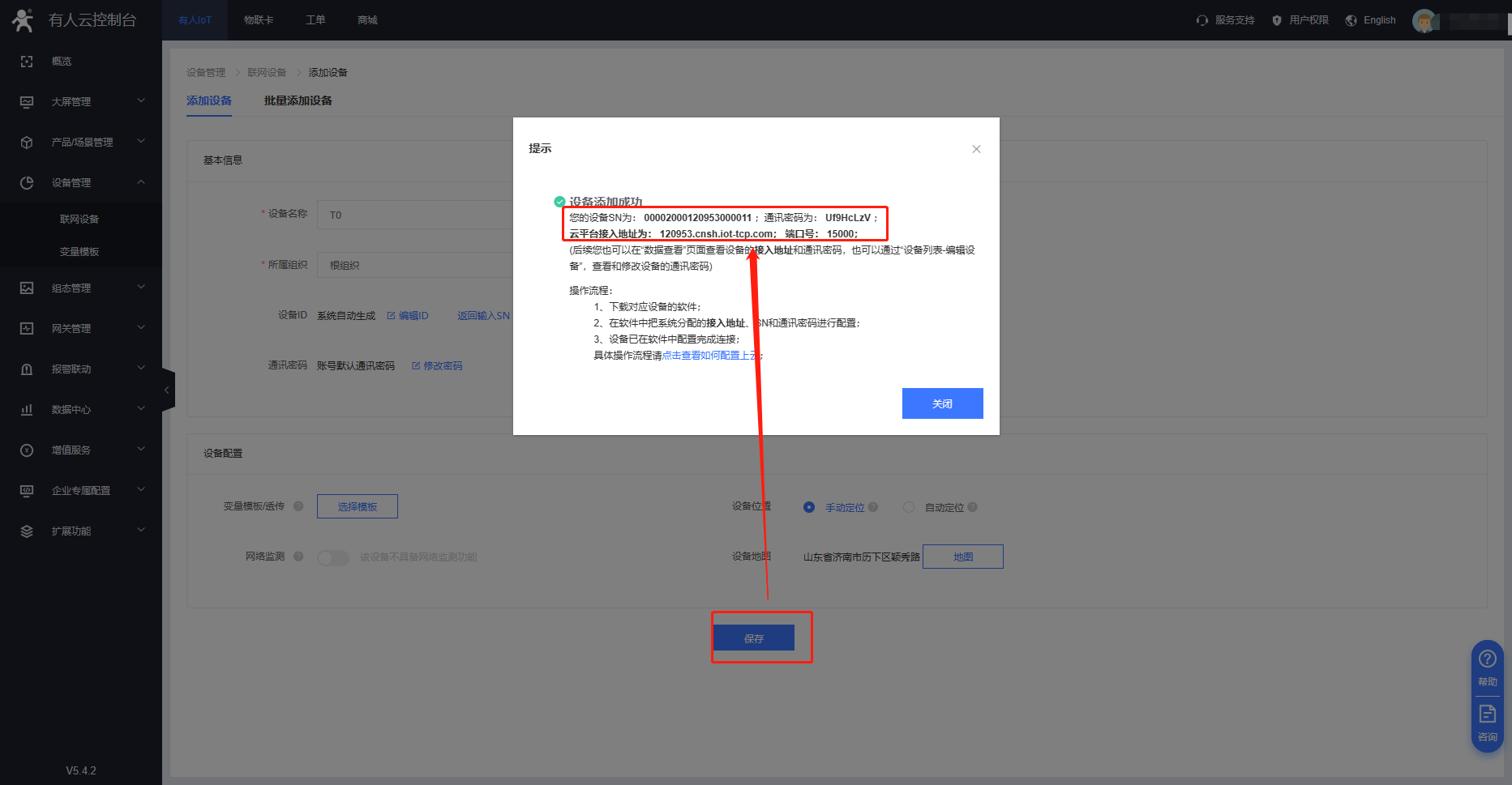3.T0正常聯網,參數設置正確,此時可以看到有人云設備已經上線