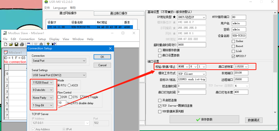 四、Modbus slave軟件模擬串口設備,串口參數設置一致