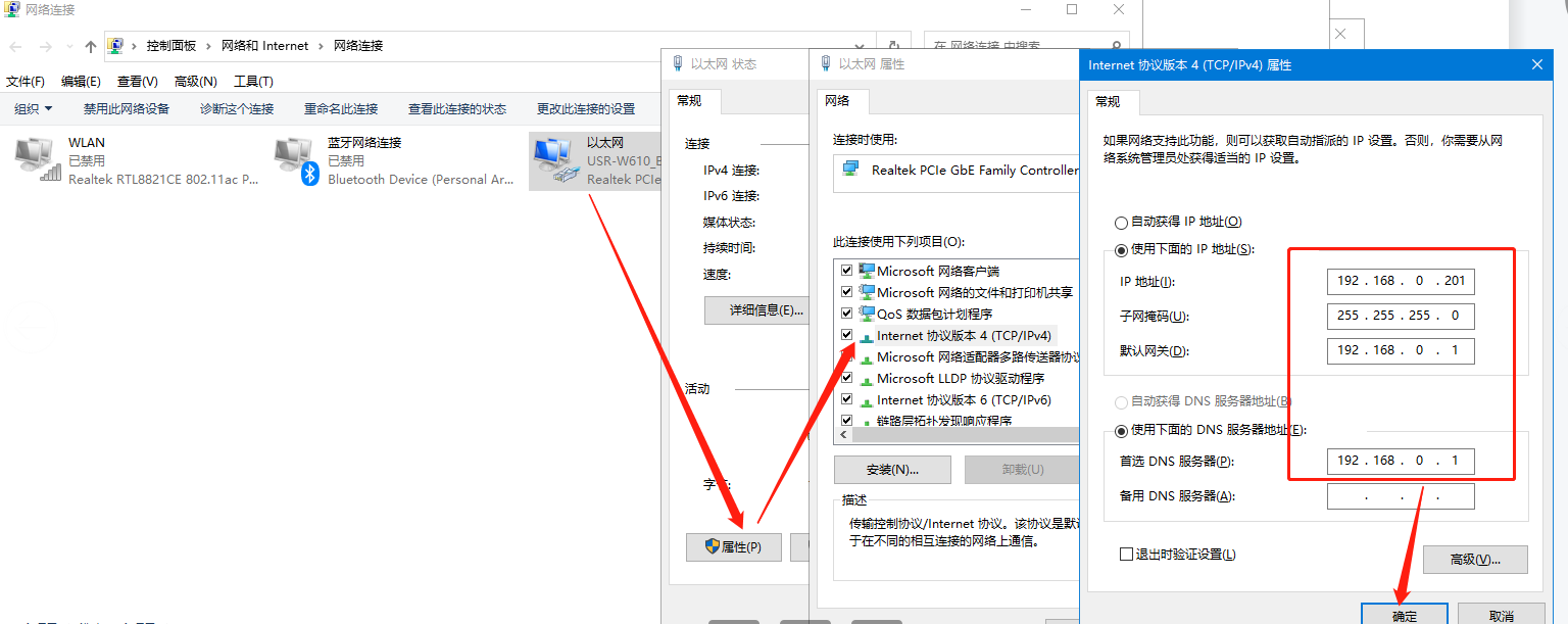 1.T0和電腦網口通過網線直連,電腦設置成靜態IP和T0同網段,T0默認靜態IP:192.168.0.7