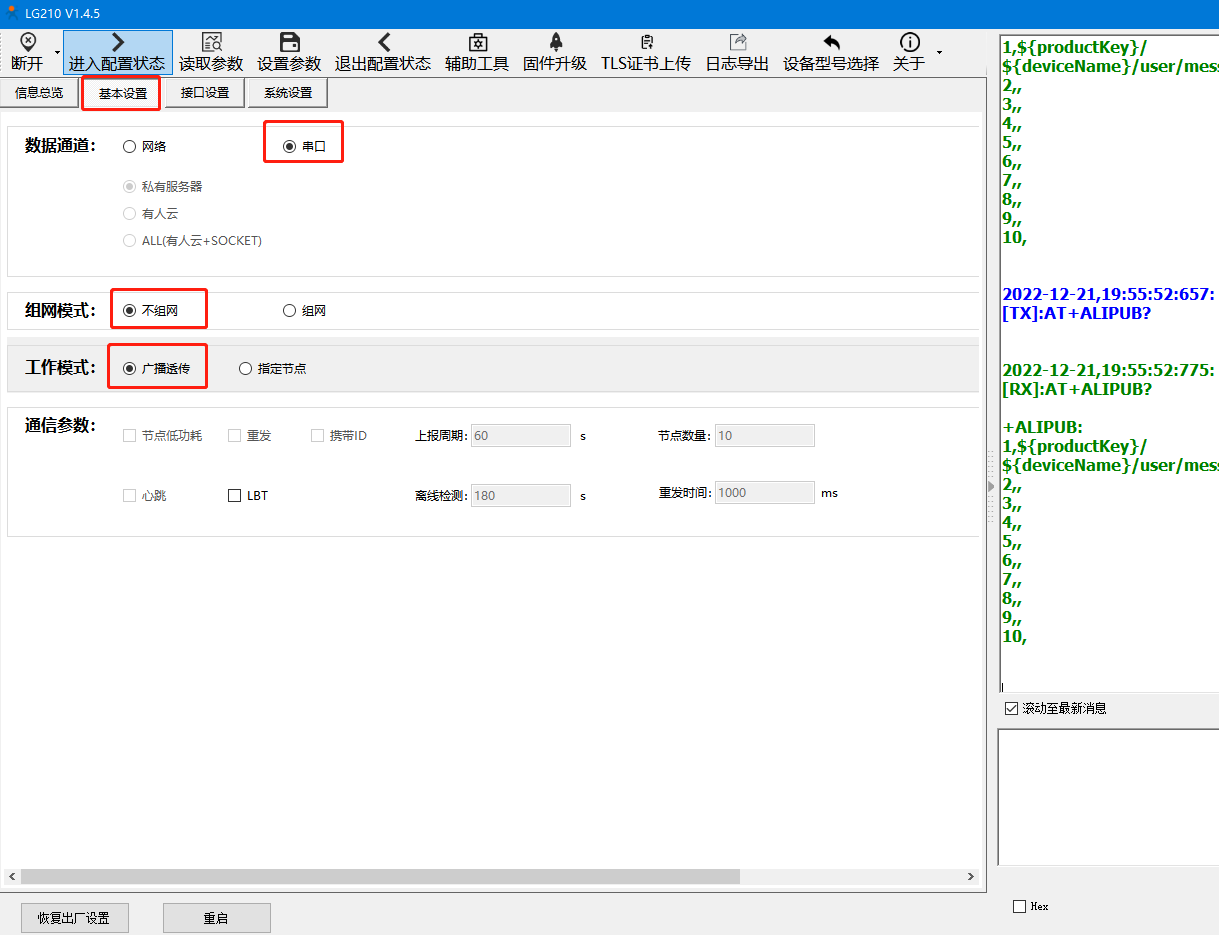 USR-LG210 和LG206-L-H20基本測試 串口廣播透傳