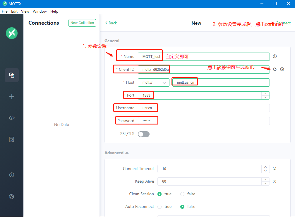 1>打開MQTTX軟件,新建MQTT鏈接(該軟件可在百度下載)